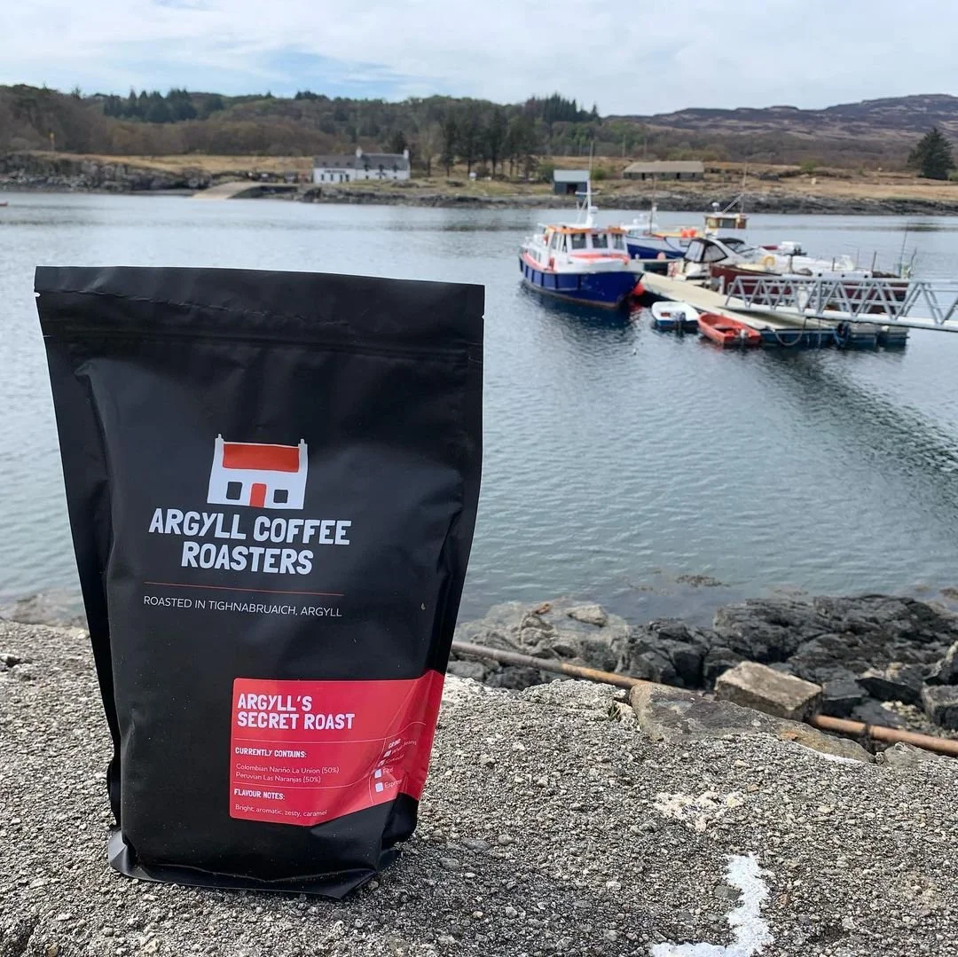 The iconic Secret Roast blend posing at Ulva Ferry