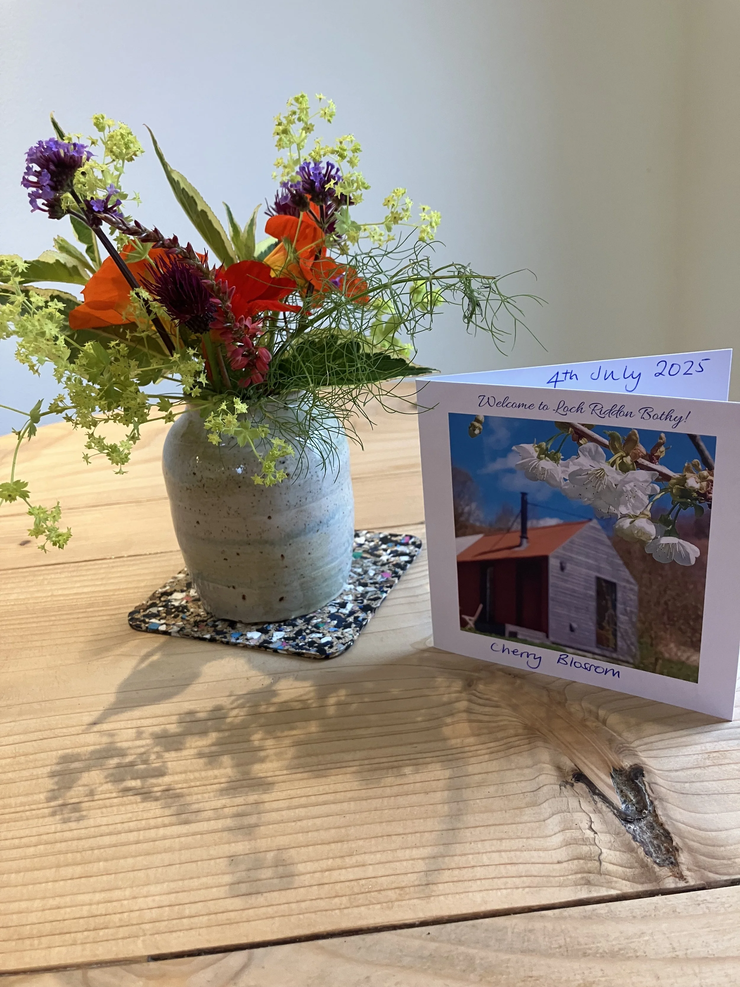 · Created photo cards of the Bothy - one is hand written for each guest giving them information about local events which they would be welcome to join, wildlife to look out for in the garden, special places to visit nearby etc.